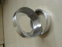 4. Remove the lens and drill the holes. I just happened to have a 10mm tap/threader laying around so that's what I used after drilling a large enough hole. The 10mm socket screw heads fit perfectly into the existing holes in the retainer ring. Alternatively, one could also use self threading screws as Hank mentioned. The important thing to note is that the screw holes must be straight, not at an angle. See the pic below. The screwed up lens holding the cigar is optional.