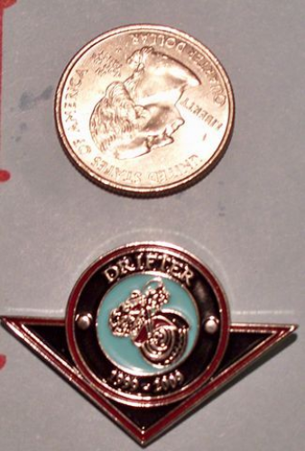 Description: This is a Drifter 10th anniversary pin. It's 1.5 inch stamped steel, enameled pin with two clutches. Limited quantities available.