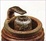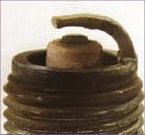Rounded electrodes with a small amount of deposits on the firing end. Normal color. Causes hard starting in damp or cold weather and poor fuel economy. The voltage required to fire the plug has approximately doubled and will continue to increase with additional miles of travel. Even higher voltage requirements, as much as 100% above normal, may occur when the engine is quickly accelerated. Poor engine performance and a loss in fuel economy are traits of a worn spark. |